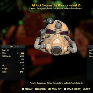 Fallout 76 jetpack helmet. Maybe you could argue the Ghillie suit did - but I dont play pvp. However switching servers respawning or swapping chest armor pieces tends to fix it. Dont warn me again for Fallout 76.