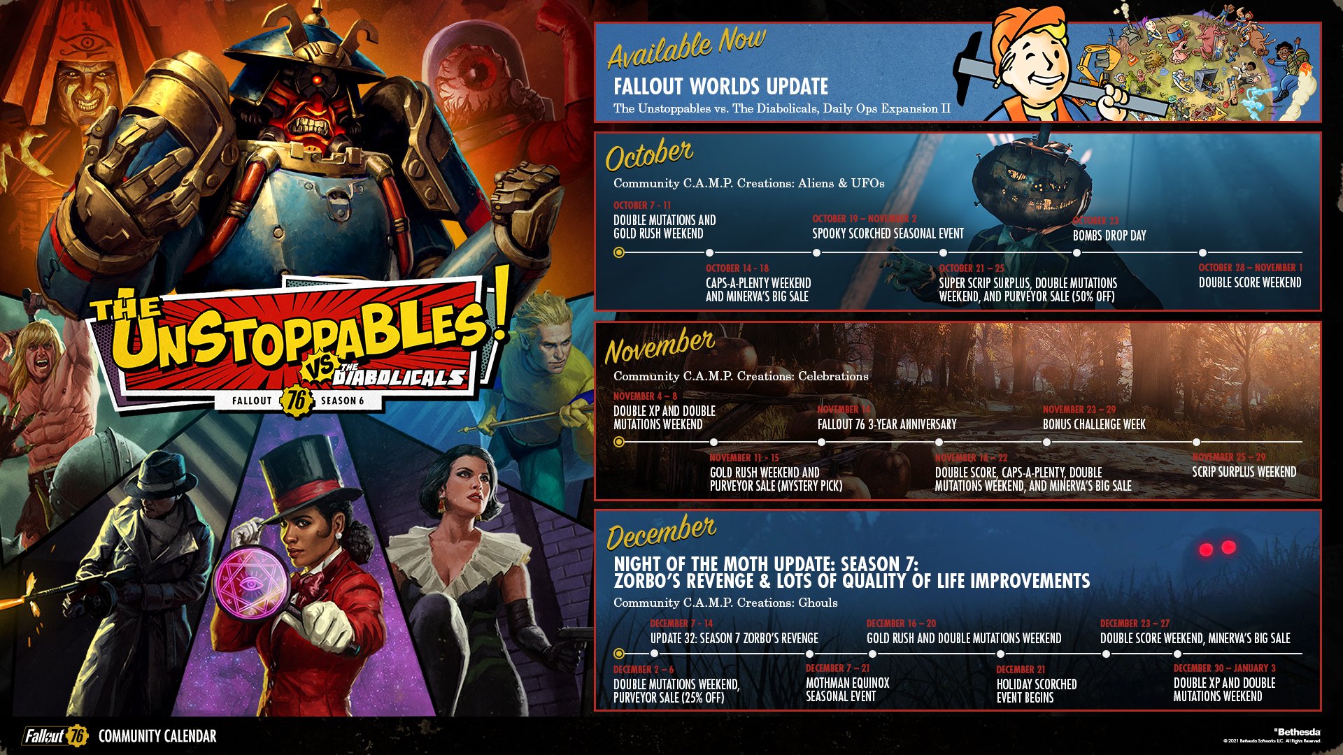 A new Inside the Vault shares details on Fallout 76s upcoming Season 6 which brings the Fallout Worlds Update and more. Fallout 76 Atomic Shop Weekly Update. This 2021 roadmap showcases major updates coming to the game this year.